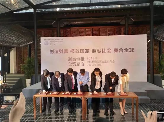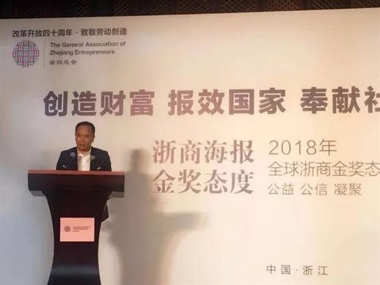 4月28日,在五一劳动节来临之际,浙商总会在湖畔大学举行2018浙商金奖态度发布会,三替集团有限公司董事长陶晓莺、万事利集团董事长屠红燕、精功集团董事长金良顺、晶科能源董事长李仙德、浙江华腾牧业董事长沈建平、西子联合控股董事长王水福、民生医药控股集团董事长竺福江七位全球浙商金奖获得者先后上台,分享他们对事业的态度,表达他们坚守的价值观,并以此向新时代致敬,向劳动创造致敬。