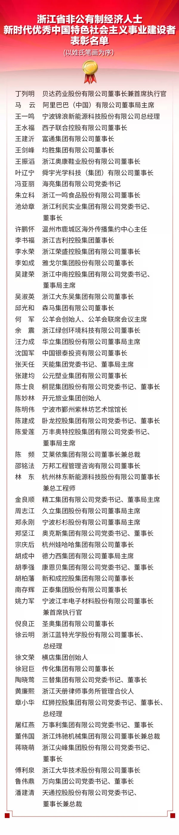 今天的大会,表彰了新时代中国特色社会主义事业的优秀建设者,55位民营企业家斩获殊荣。他们中既有宗庆后这样改革开放后第一代创业者,也有马云这样的互联网经济领军人物,还有鲁伟鼎这样的新一代浙商。