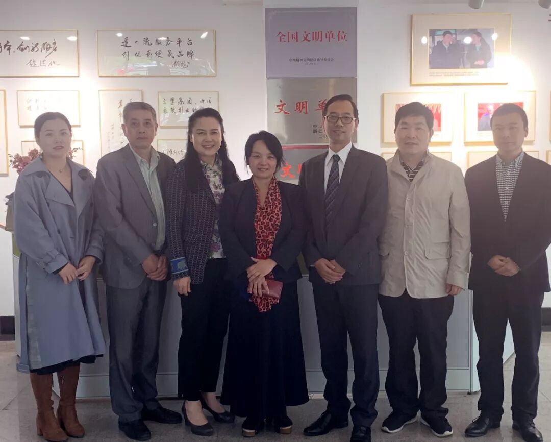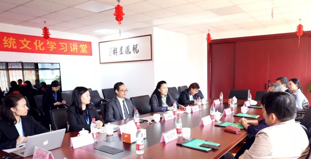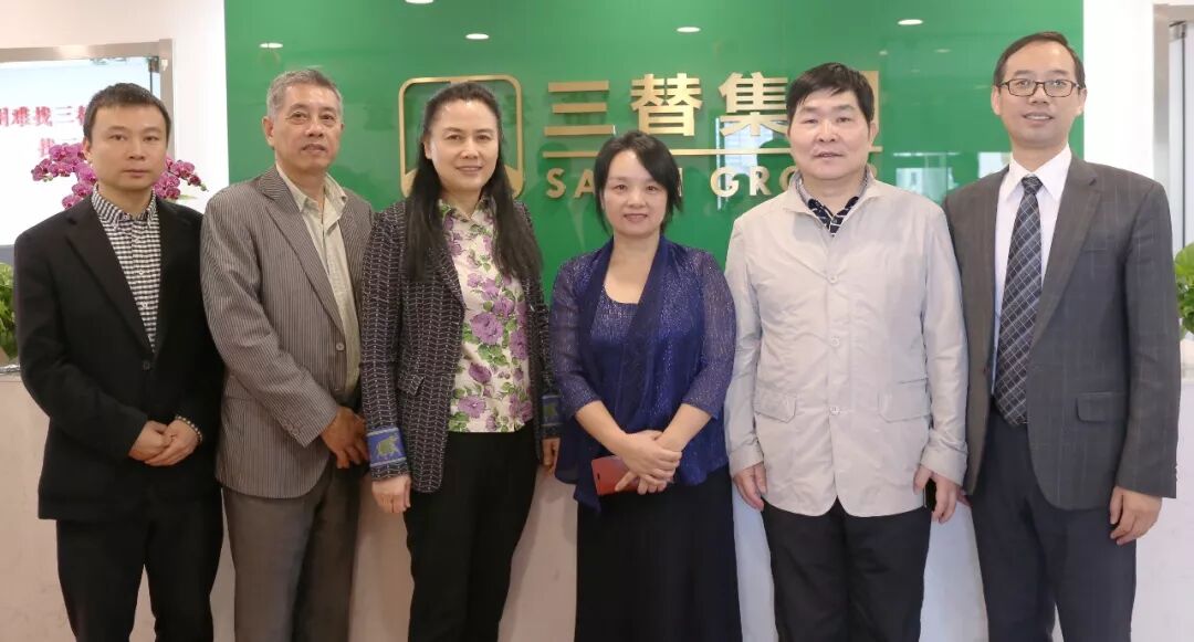 陶晓莺董事长陪同秘书长Carrie Wei一行参观三替集团,并在集团品牌墙合影留念