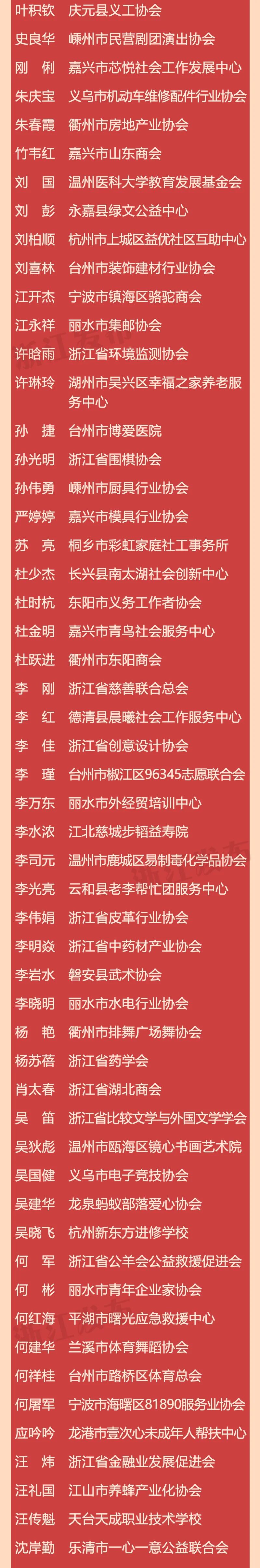 近期,浙江省民政厅组织开展了2020年度品牌社会组织和社会组织领军人物评选工作。经全省各级社会组织登记管理机关、业务主管单位和行业管理部门推荐、省民政厅复核、社会公示、培训提升等程序,确定200名个人为2020年度浙江省社会组织领军人物。